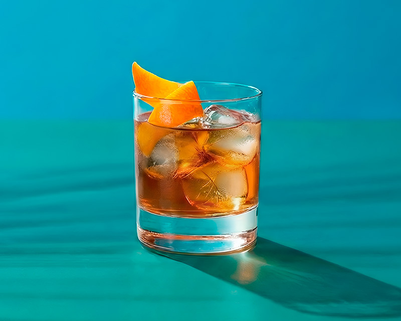 Rör alla ingredienser kalla i ett rörglas fyllt med is. Sila upp drinken i ett isfyllt tumblerglas. Garnera med apelsinzest.